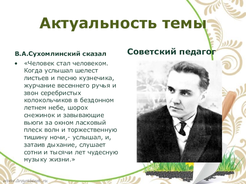 Это сайт презентаций, где можно хранить и обмениваться своими презентациями, докладами, проектами, шаблонами в формате PowerPoint с другими пользователями. Мы помогаем школьникам, студентам, учителям, преподавателям хранить и обмениваться учебными материалами.