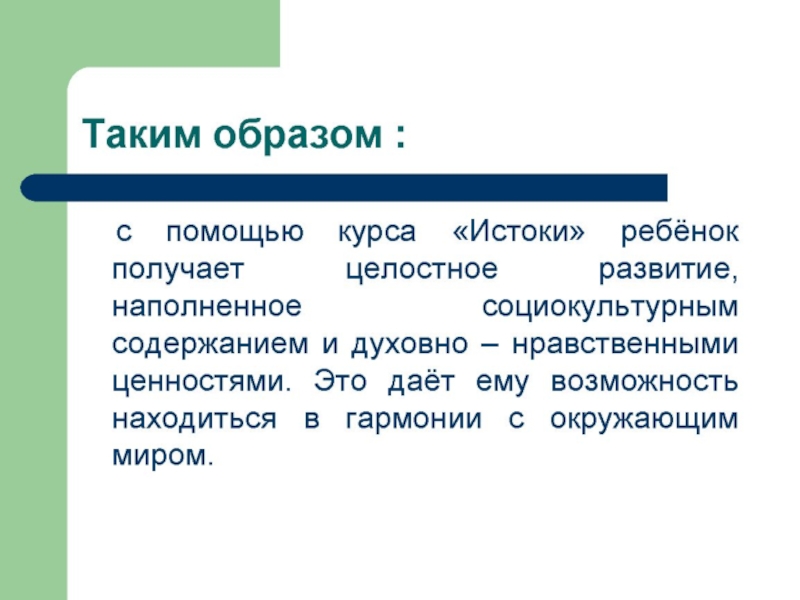 Презентация, доклад на тему Развитие системы духовно-нравственных ценностей посредством учебного курса Истоки.