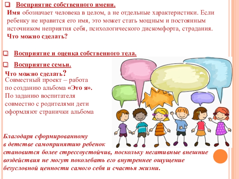 а не отдельные характеристики. Если ребенку не нравится его имя, это может стать мощным и постоянным источником неприятия себя, психологического дискомфорта, страдания.