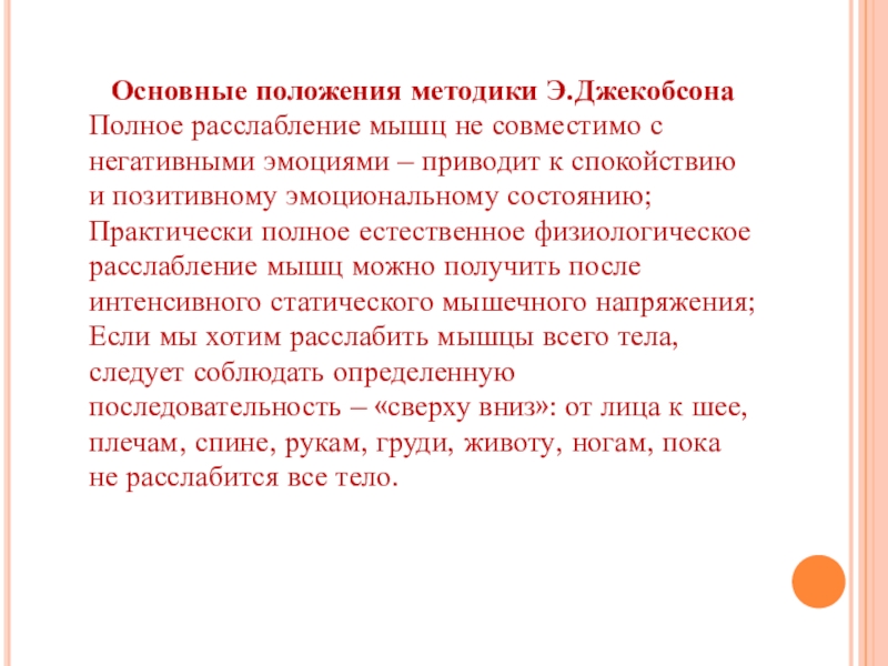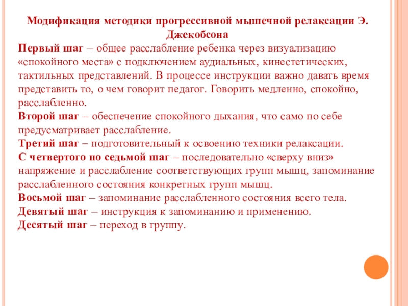Слайд 16Модификация методики прогрессивной мышечной релаксации Э.Джекобсона
