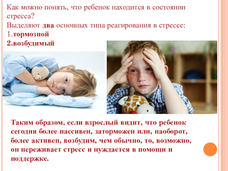 Слайд 8Как можно понять, что ребенок находится в состоянии стресса?