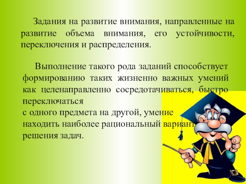 Выполнение такого рода заданий способствует формированию таких жизненно важных умений как целенаправленно сосредотачиваться, быстро переключаться