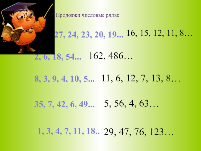 б) Даны два числа: 15 и 23. Первую цифру второго числа прибавьте к первой цифре первого числа... отнимите от полученного числа 2..., а теперь прибавьте 7... Запишите результат.