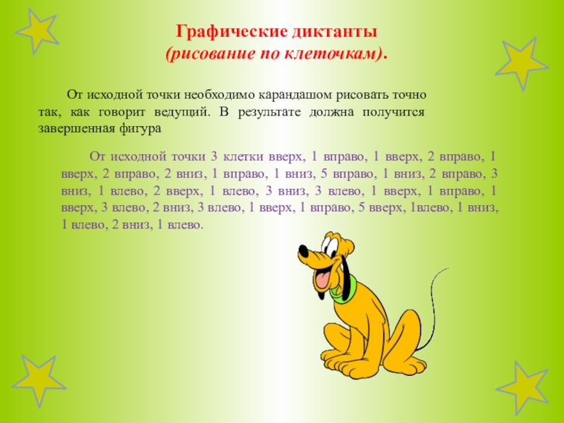 От исходной точки необходимо карандашом рисовать точно так, как говорит ведущий. В результате должна получится завершенная фигура