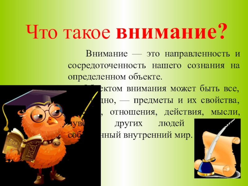 Устойчивость внимания — это длительное удержание внимания на предмете или какой-нибудь деятельности.