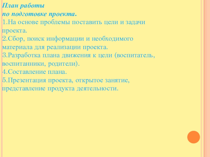 3.Разработка плана движения к цели (воспитатель, воспитанники, родители).