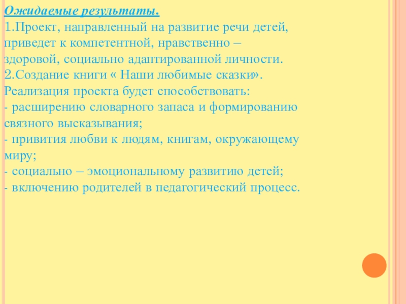 1.Проект, направленный на развитие речи детей, приведет к компетентной, нравственно