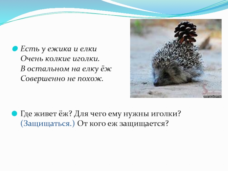 Где живет ёж? Для чего ему нужны иголки? (Защищаться.) От кого еж защищается?