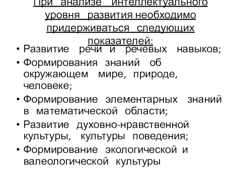 При анализе интеллектуального уровня развития необходимо