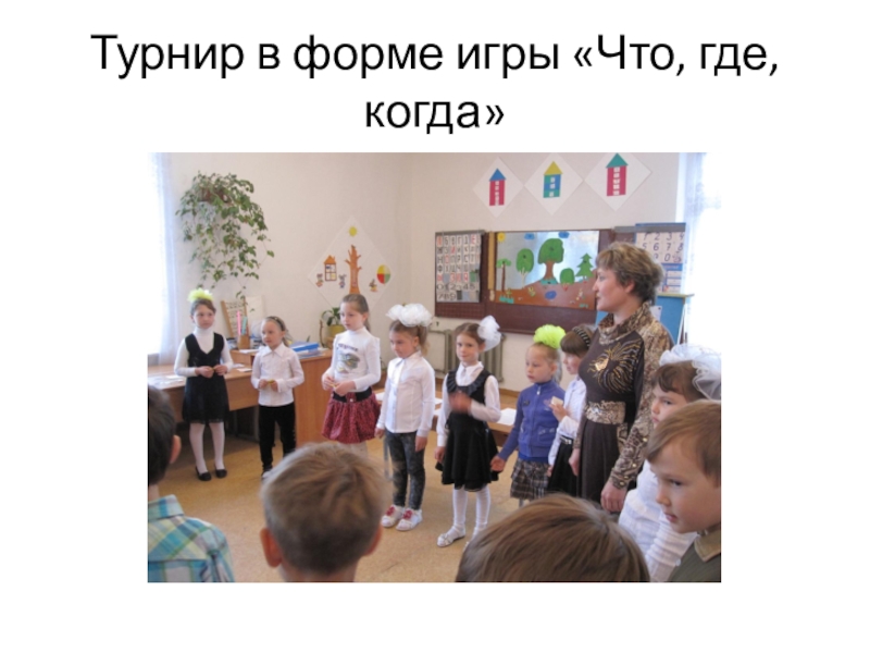 Слайд 21Турнир в форме игры «Что, где, когда»