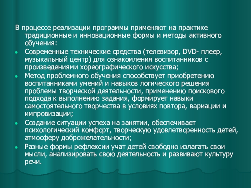 Слайд 4Процесс развития творческих способностей воспитанников, будет более эффективным, если: