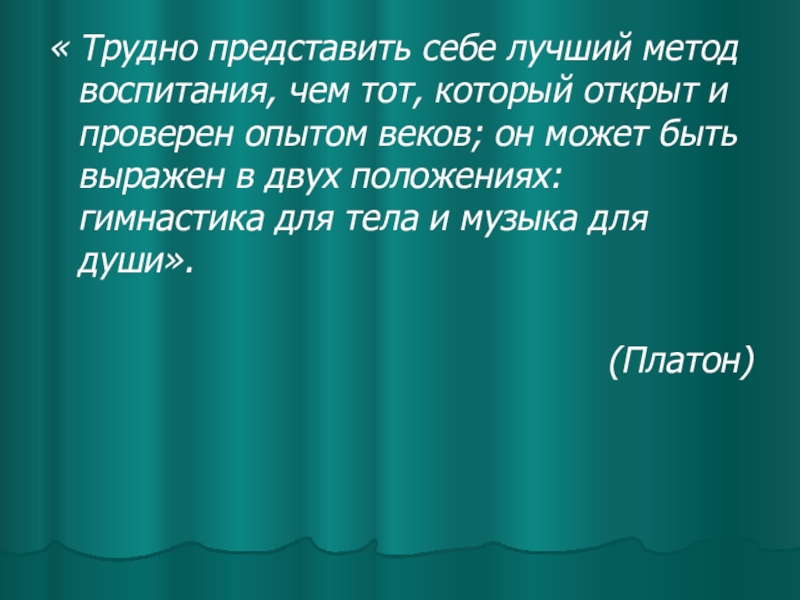 и проверен опытом веков; он может быть выражен в двух положениях: гимнастика для тела и музыка для души».