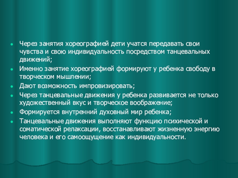 Слайд 3Через занятия хореографией дети учатся передавать свои чувства и свою индивидуальность