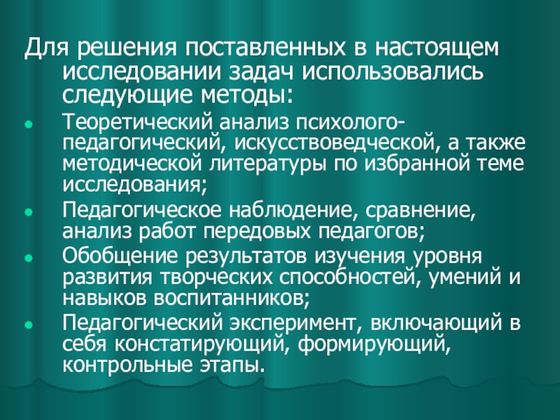 Слайд 7Для решения поставленных в настоящем исследовании задач использовались следующие методы:
