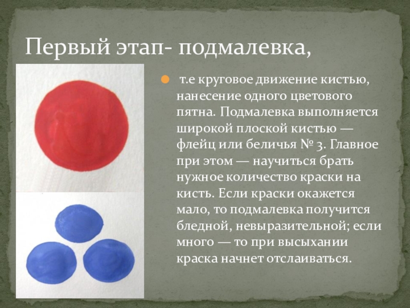 Слайд 5Первый этап- подмалевка,