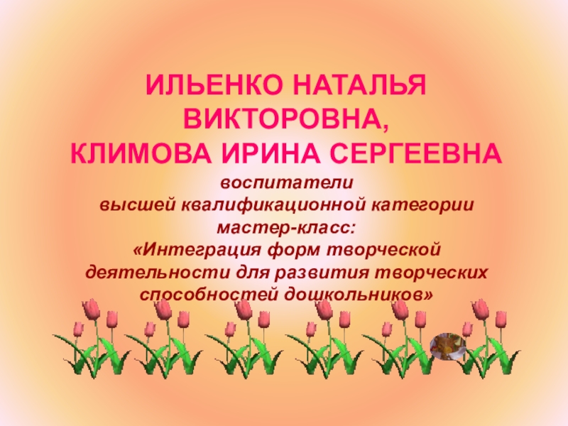 Слайд 12ИЛЬЕНКО НАТАЛЬЯ ВИКТОРОВНА, КЛИМОВА ИРИНА СЕРГЕЕВНА воспитатели высшей квалификационной категории мастер-класс: «Интеграция форм творческой деятельности