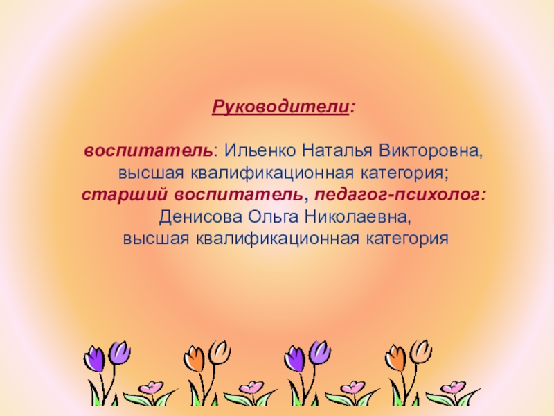 Слайд 3Руководители: воспитатель: Ильенко Наталья Викторовна, высшая квалификационная категория; старший воспитатель, педагог-психолог:
