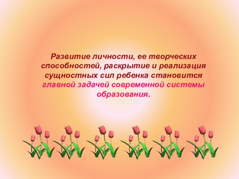 Слайд 9Развитие личности, ее творческих способностей, раскрытие и реализация сущностных сил ребенка