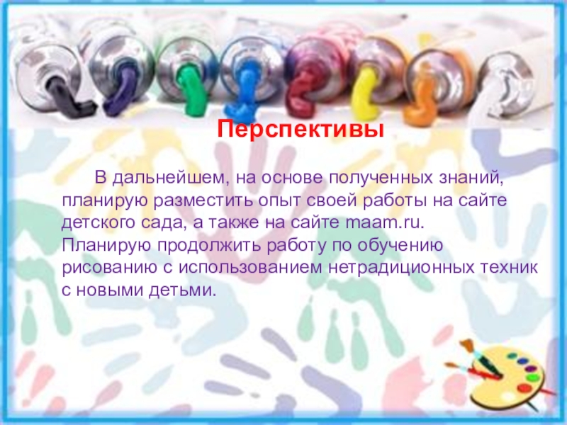 Планирую продолжить работу по обучению рисованию с использованием нетрадиционных техник с новыми детьми.