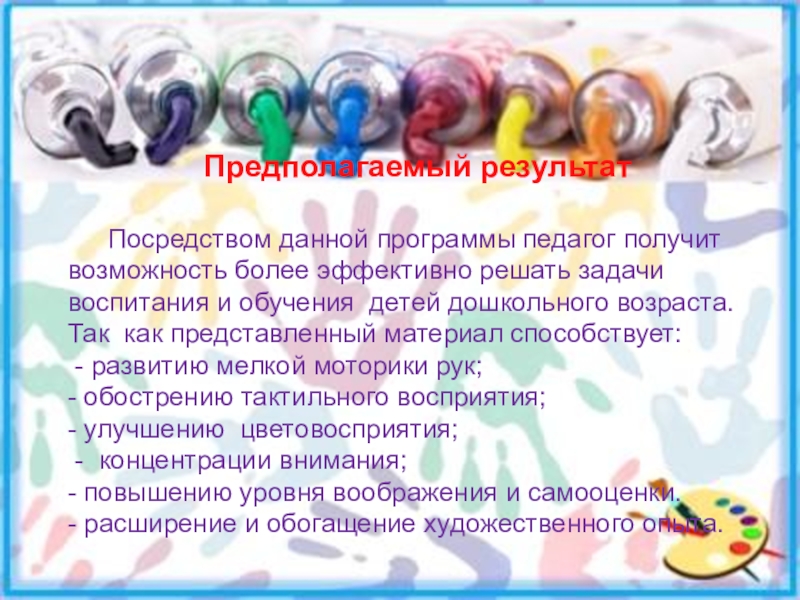 Посредством данной программы педагог получит возможность более эффективно решать задачи