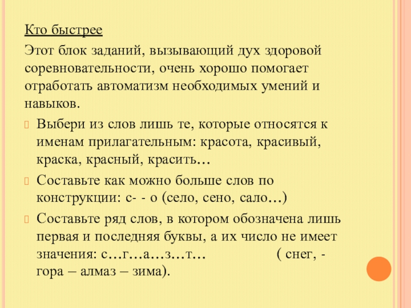 Этот блок заданий, вызывающий дух здоровой соревновательности, очень хорошо помогает