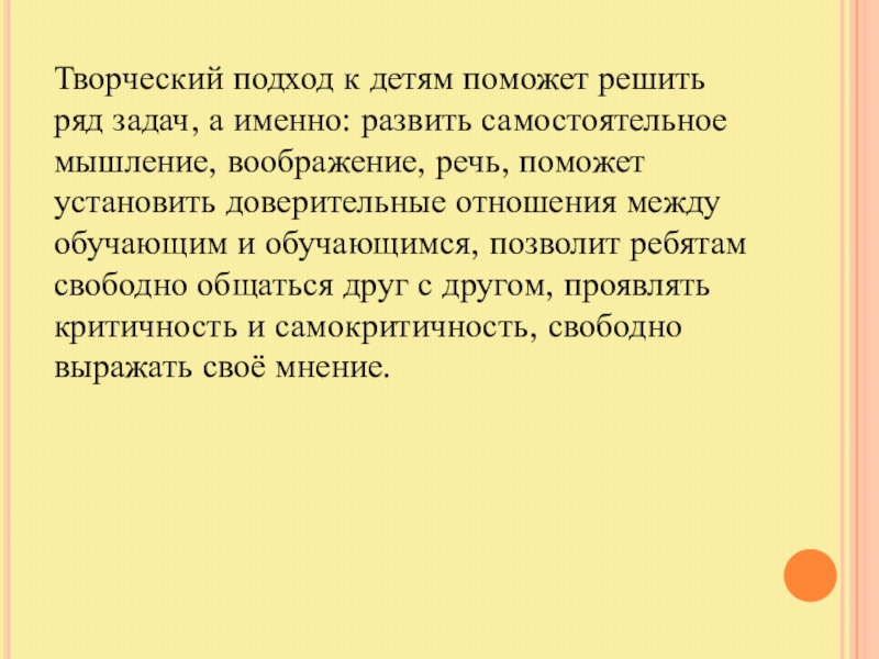 Слайд 8Творческий подход к детям поможет решить ряд задач, а именно: развить
