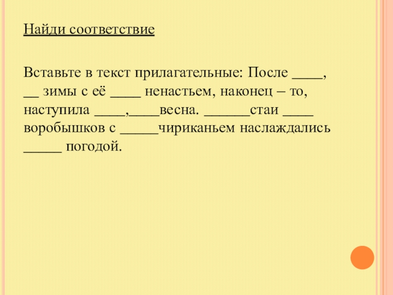 ____ ненастьем, наконец – то, наступила ____,____весна. ______стаи ____ воробышков с _____чириканьем наслаждались _____ погодой.