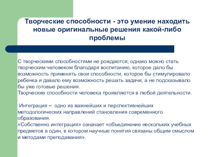 Творческие способности - это умение находить новые оригинальные решения какой-либо проблемы