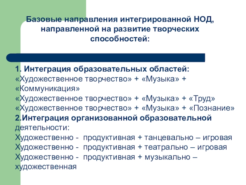 Базовые направления интегрированной НОД, направленной на развитие творческих способностей: