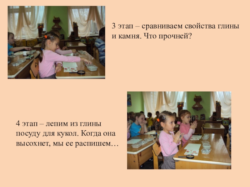 детей в процессе формирования представлений о свойствах песка, глины, камня.
