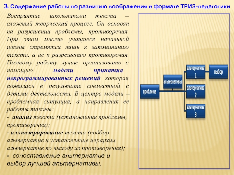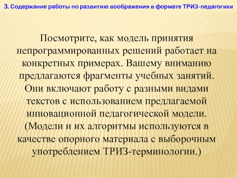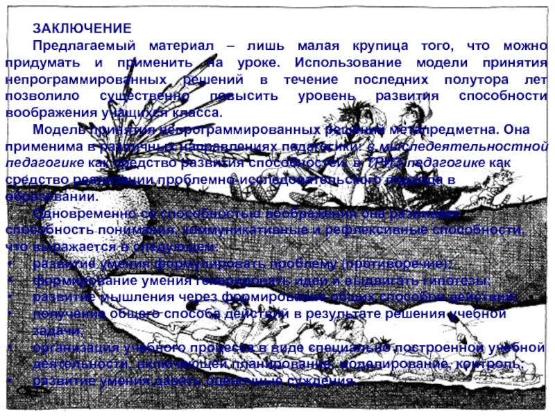 применить на уроке. Использование модели принятия непрограммированных решений в течение последних полутора лет позволило существенно повысить уровень развития способности воображения учащихся класса.