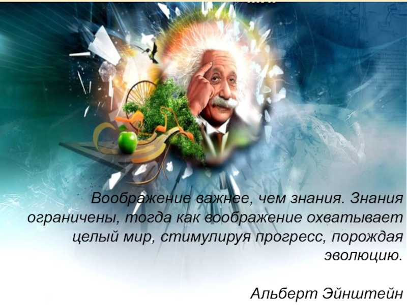 Слайд 2Воображение важнее, чем знания. Знания ограничены, тогда как воображение охватывает целый