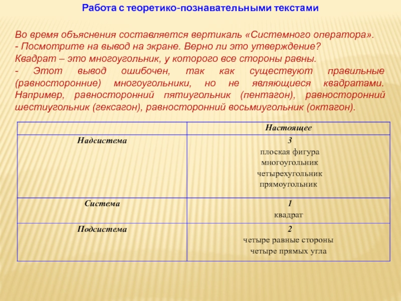 - использование механизмов РТВ для формирования ассоциативного и системного мышления.