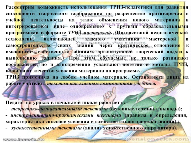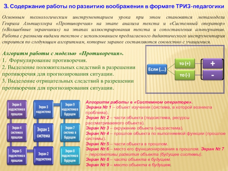 Технологический инструментарий ТРИЗ-педагогики разнообразен и содержателен. Развивать способность воображения с его