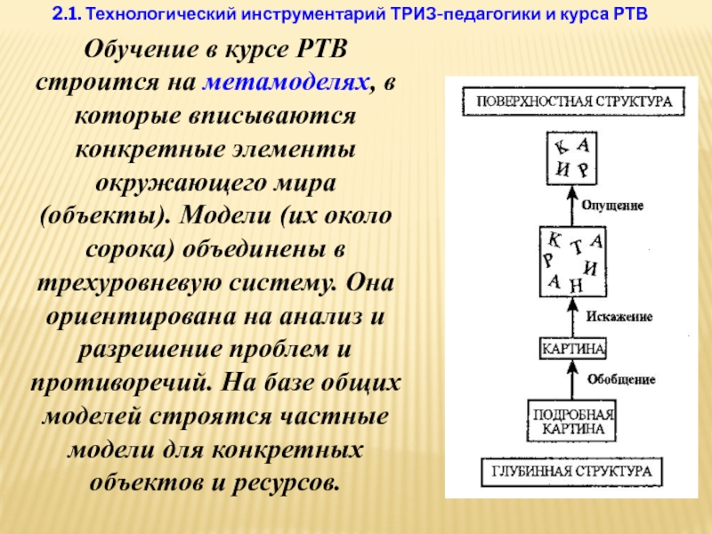Слайд 142.1. Технологический инструментарий ТРИЗ-педагогики и курса РТВ