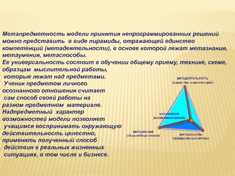 Слайд 43Метапредметность модели принятия непрограммированных решений можно представить в виде пирамиды, отражающей