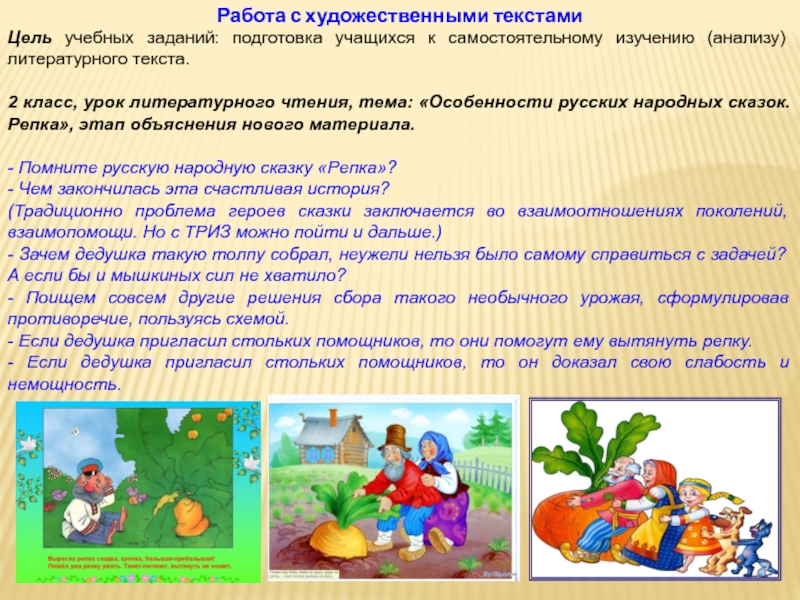 2 класс, урок литературного чтения, тема: «Особенности русских народных сказок. Репка», этап объяснения нового материала.