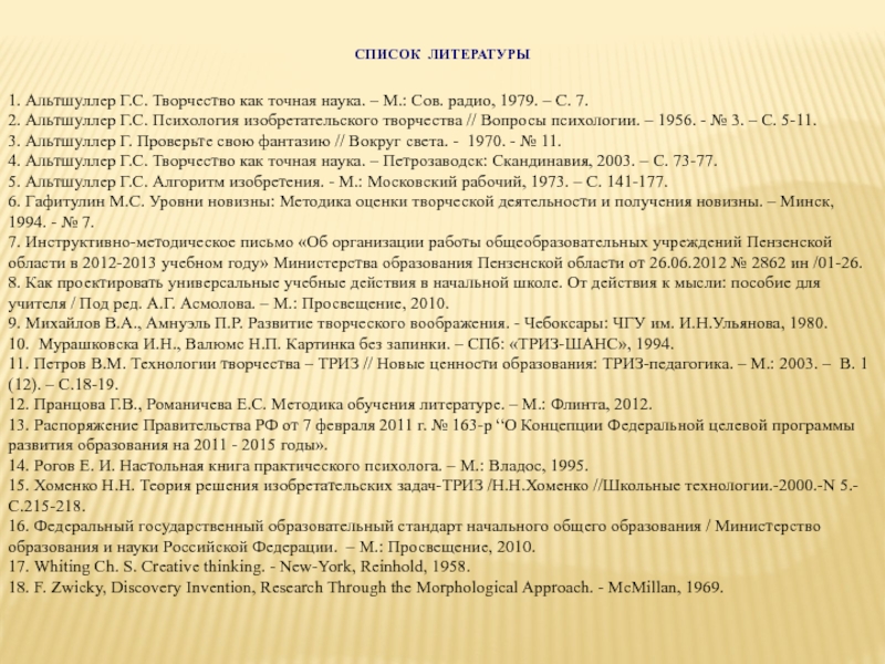 1. Альтшуллер Г.С. Творчество как точная наука. – М.: Сов.