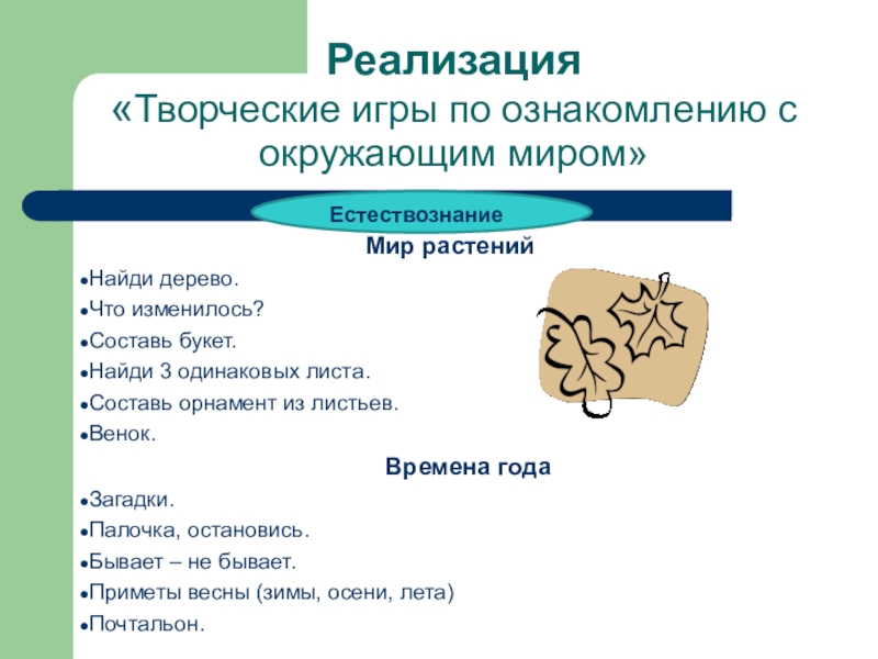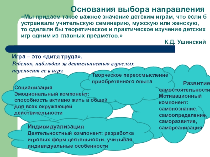 Деятельностный компонент: разработка игровых форм деятельности, учитывая индивидуальные особенности