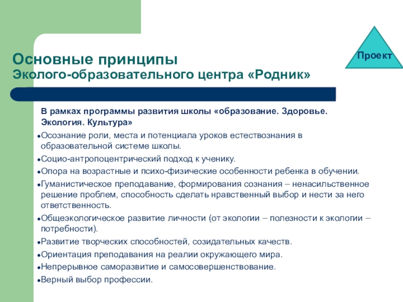Проекты: «Марш парков», «Вода на земле», «Животный мир»