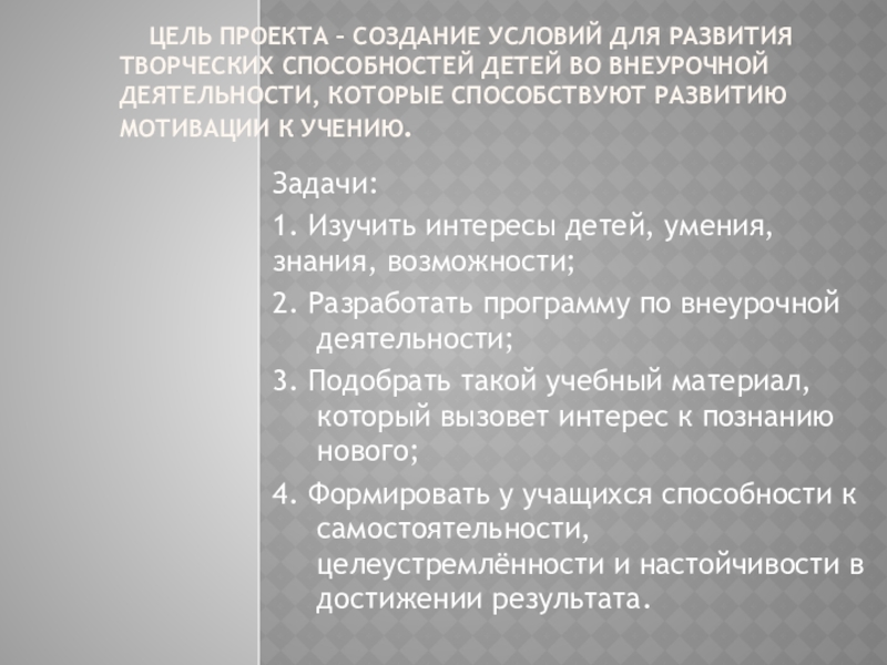4. Формировать у учащихся способности к самостоятельности, целеустремлённости и настойчивости в достижении результата.