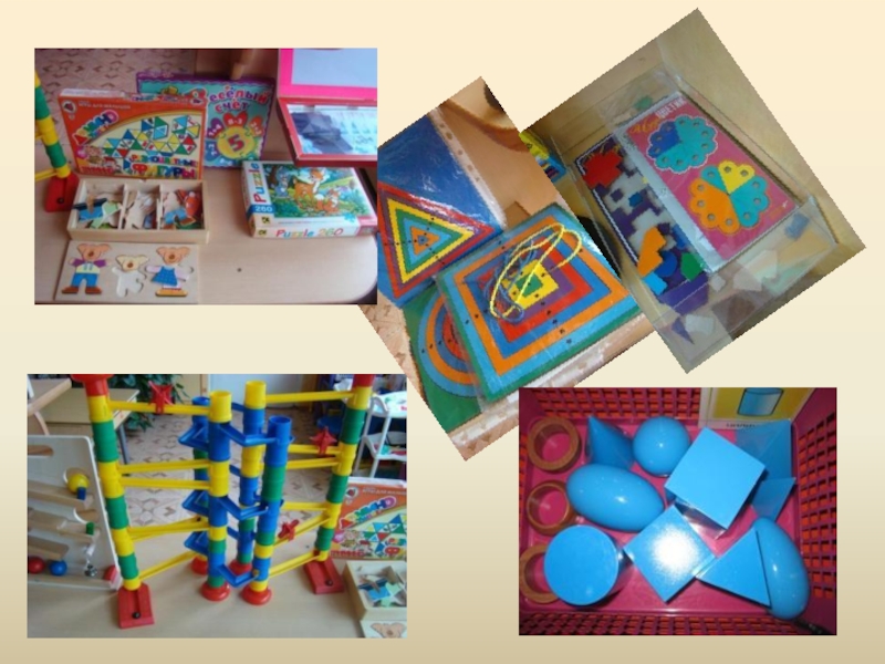 Набор геометрических тел для сериации по величине, Набор геометрических фигур для сериации по величине, Наборы шаблонов, трафаретов форм и цифр, различные лекала, наборы для нанизывания на леску (бусы,шарики), Настольно-печатные игры из серии «Цвет, форма, величина», панно «Коврограф» со съемным материалом, Рамки с застежками: крючки, шнуровка, пуговицы, замки, липучки.