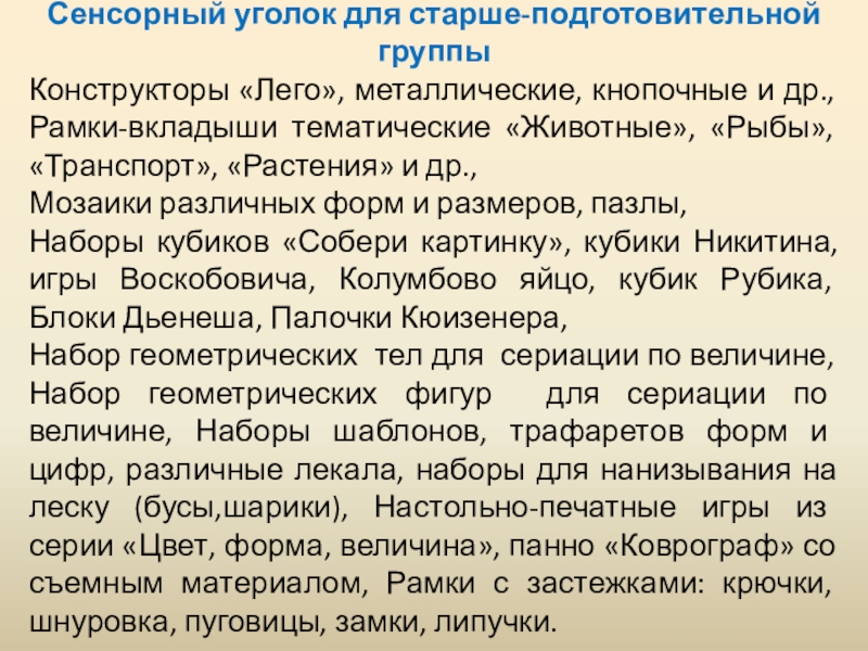 Слайд 36Сенсорный уголок для старше-подготовительной группы