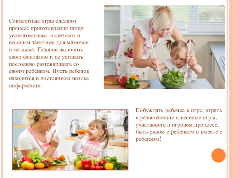 Побуждать ребенка к игре, играть в развивающие и веселые игры, участвовать в игровом процессе, быть рядом с ребенком и вместе с ребенком!