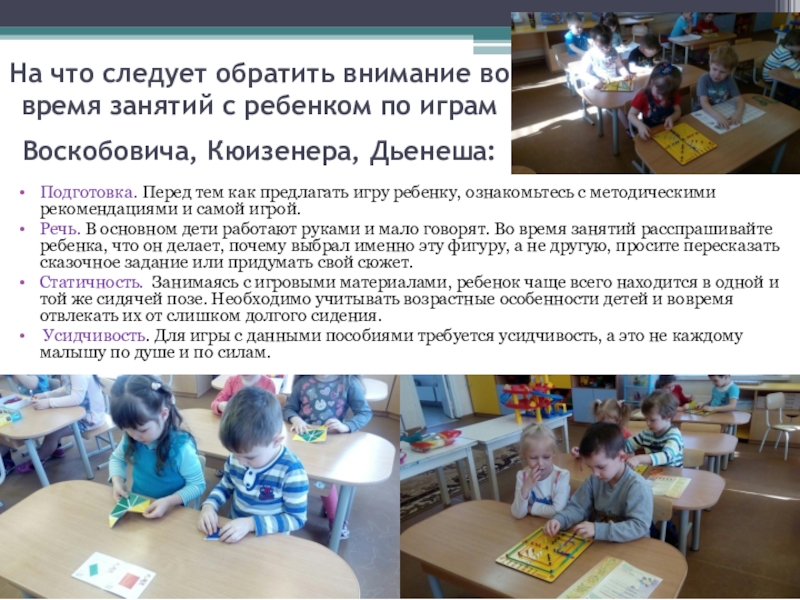 Усидчивость. Для игры с данными пособиями требуется усидчивость, а это не каждому малышу по душе и по силам.