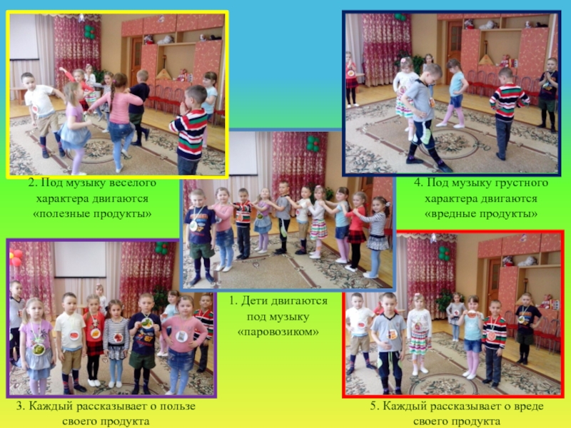 4. Под музыку грустного характера двигаются «вредные продукты»