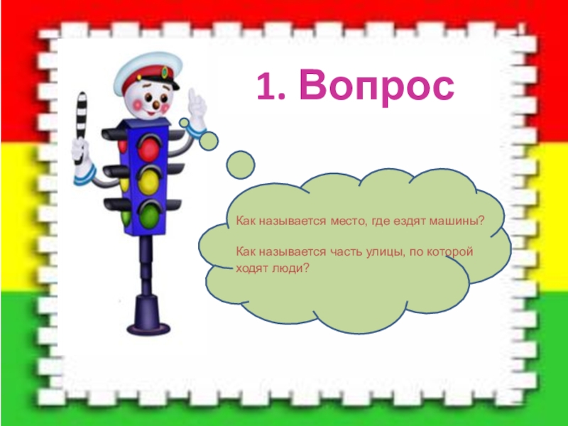 1. ВопросКак называется место, где ездят машины? Как называется часть улицы, по которой ходят люди?