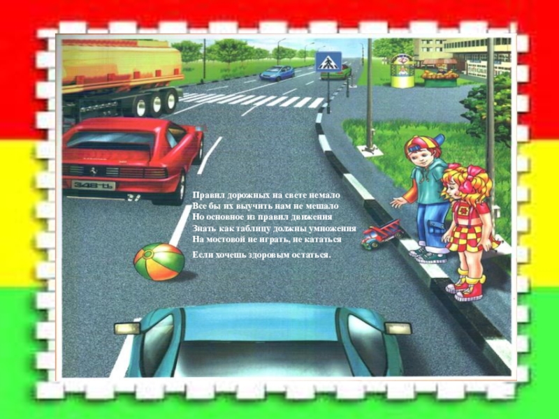 мешало Но основное из правил движения Знать как таблицу должны умножения На мостовой не играть, не кататься Если хочешь здоровым остаться.