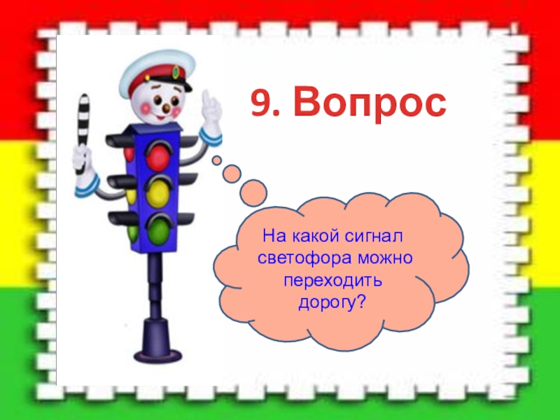 9. ВопросНа какой сигнал светофора можно переходить дорогу?