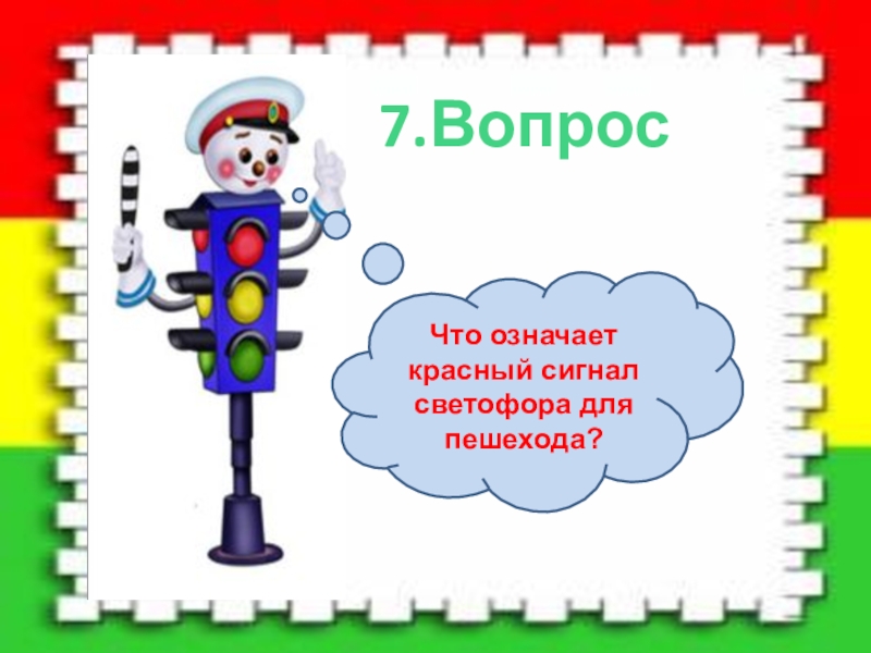 Что означает красный сигнал светофора для пешехода?7.Вопрос